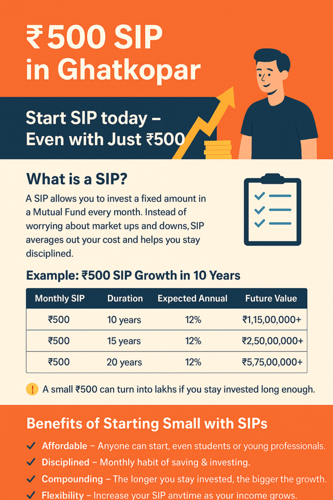 Many people in Ghatkopar, Mumbai believe they need a large amount of money to start investing. The truth is, you can begin your investment journey with just ₹500 per month through a SIP (Systematic Investment Plan).